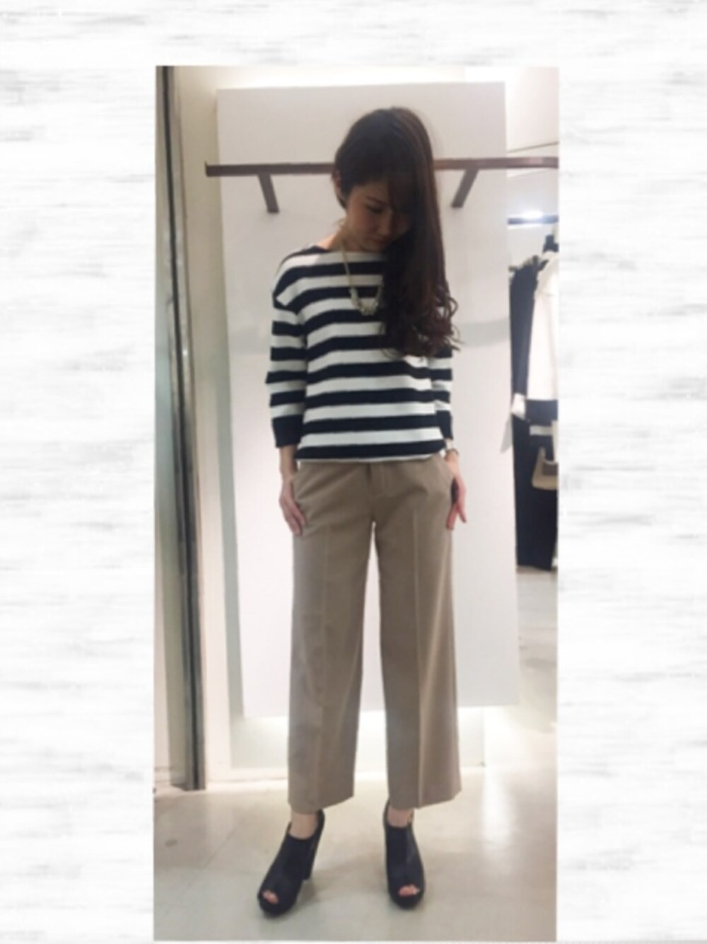 ボーダーニット&ワイドパンツコーデ。休日のお出かけにおすすめなコーデです。