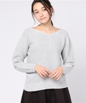 Vネックからのぞくデコルテがきれいなニット。ワイドパンツと合わせてグレーコーデ。