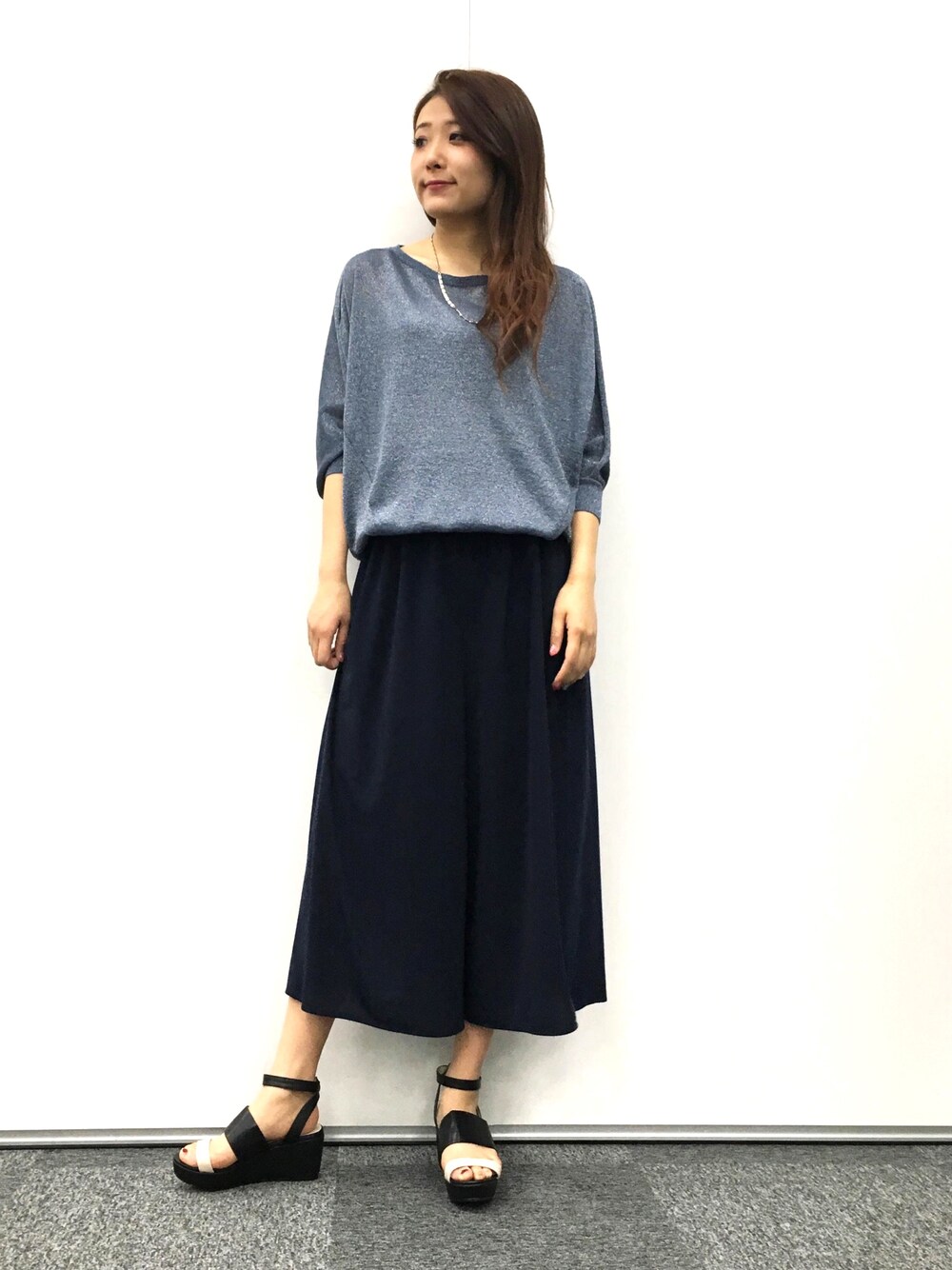 ドルマンスリーブのラメニットはスカウチョと合わせて休日のリラックスコーデ。
