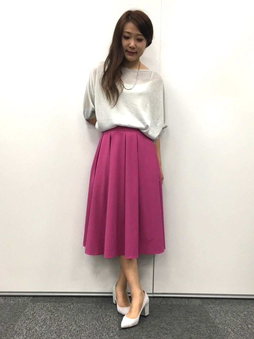 ピンクのフレアスカートはたちまちレディライクな雰囲気にしてくれる今年のマストハブアイテム!