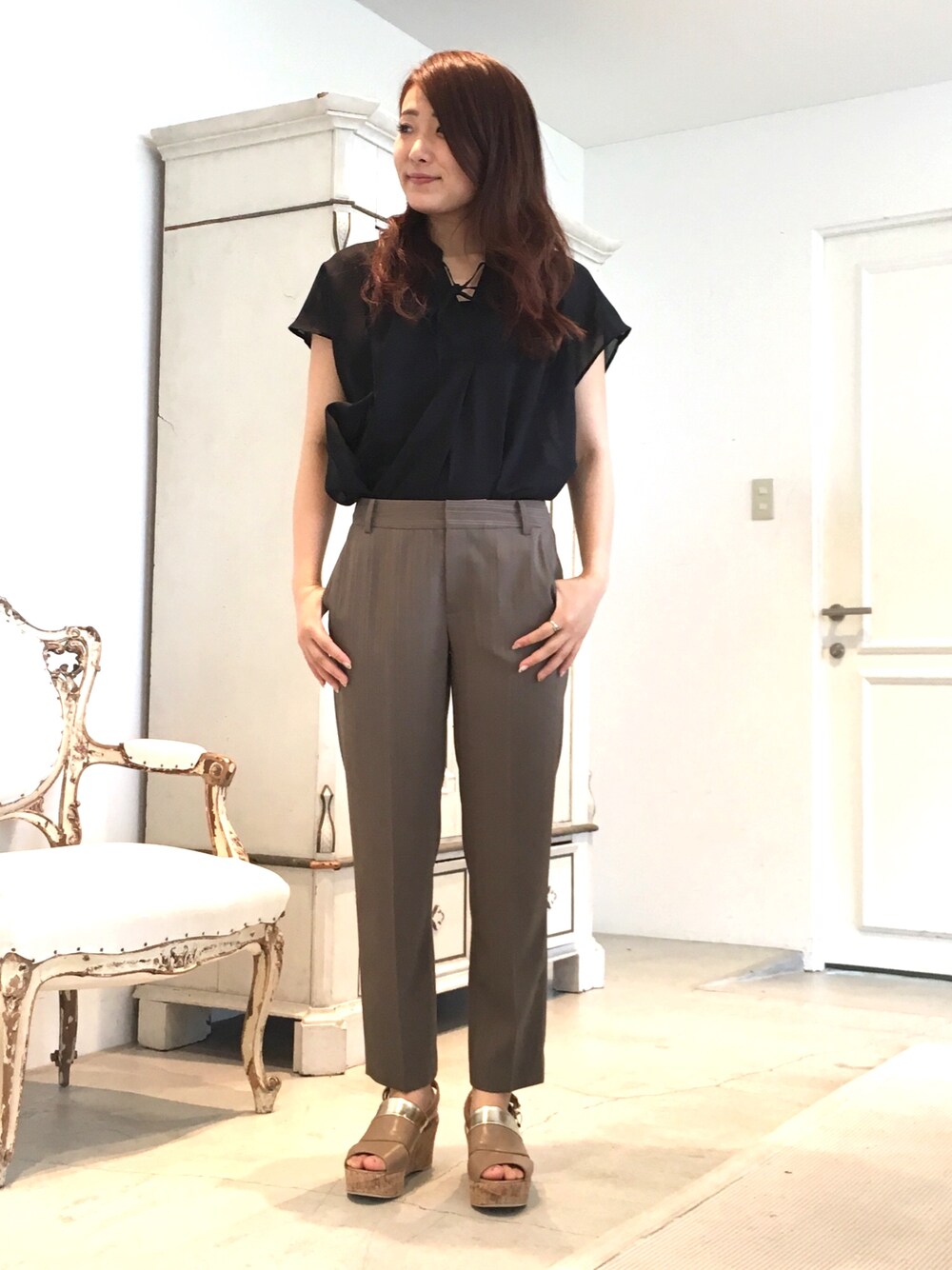 22 OCTOBRE Staffのシャツ/ブラウス「ハイツイストボイルブラウス」を使ったコーディネート