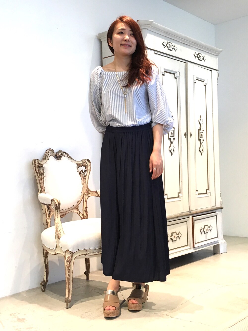 22 OCTOBRE Staffのシャツ/ブラウス「ストライプジャージーブラウス」を使ったコーディネート
