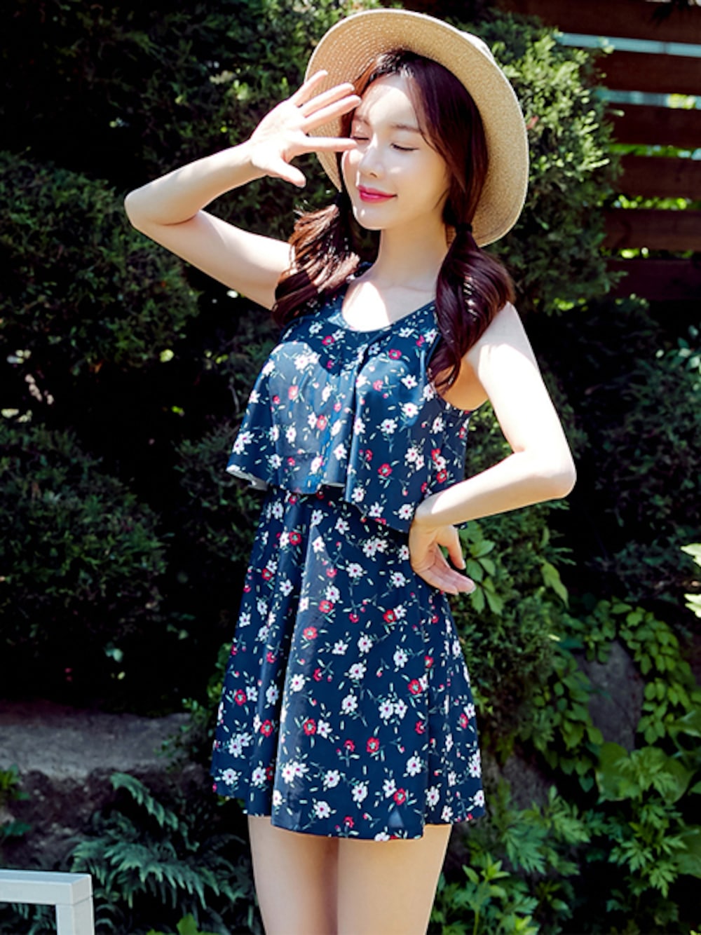 TeddyShop(TeddyShop)の水着「水着 レディース 小花柄 レトロワンピース オールインワン 体型カバー[大きいサイズ有]」を使ったコーディネート