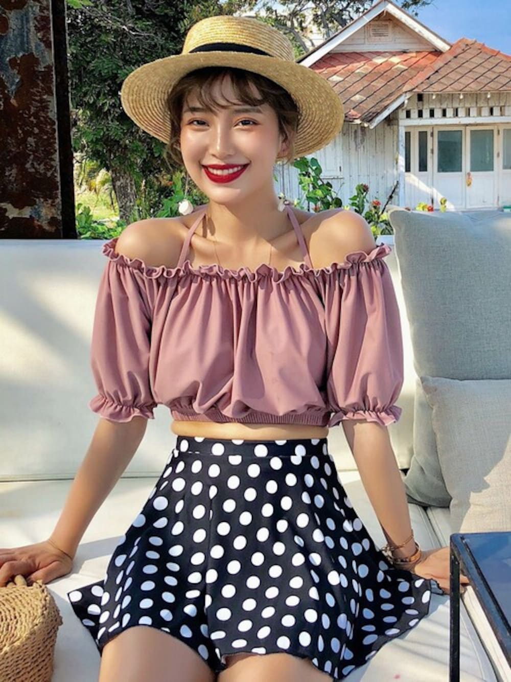 当店で毎年人気沸騰!!ピンクカラーが圧倒的な可愛さの オフショル風トップス+ドット柄フレアスカート+ビキニ セットアップ4点セット♪ さりげない控えめフリルがガーリーな、トレンドのオフショルダートップスはデコルテをキレイ魅せ!! またフレアスカートにも注目!!旬なドット柄がレトロ可愛い♪ トップスの下はホルターネックビキニで、オフショルトップスと組み合わせるだけで レイヤードコーデが楽々完成♪夏に一枚は持っておきたいセットアップ水着です♪ ★ZOZOTOWNにて8/9(日)~8/10(月)23:59まで1000円OFFクーポン発行中!!★ 本商品もクーポン対象♪ほかにも今年推したい新作水着やレディースアイテムなど数多くクーポン対象中♪気になるアイテムを今すぐCHECK!! TeddyShop in ZOZOTOWN https://zozo.jp/shop/teddyshop/ ----------------------------------------------------- \初開催!!プレゼントキャンペーン/ 【当店人気No.1商品】 #プリーツロングスカート 全7色、各色1名様にプレゼント 開催期間 2020年8月12日(水)▶︎▶︎8月19日(水) 詳細は@day_closet1203のインスタをチェック! -----------------------------------------------------