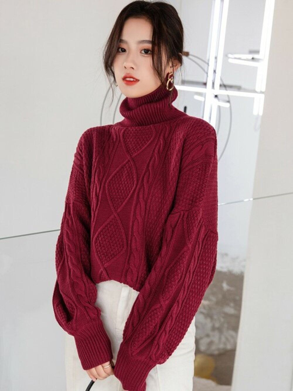 TeddyShop(TeddyShop)のニット/セーター「レディース ローゲージ風ぽわん袖タートルネックニットセーター」を使ったコーディネート