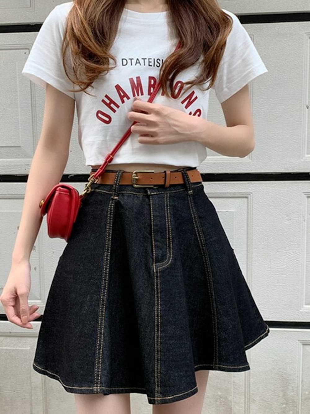TeddyShop(TeddyShop)のデニムスカート「レディース ハイウエストフレアデニムミニスカート [大きいサイズあり]」を使ったコーディネート