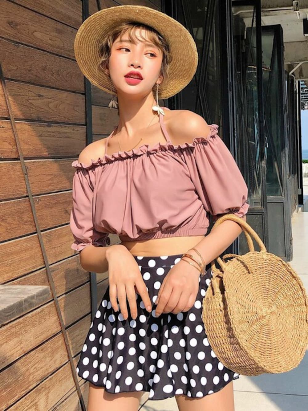 ✰⋆。:゚・*☽:゚・⋆。✰⋆。:゚・*☽:゚・⋆。✰⋆。:゚・*☽ \選べる18colors/ 夏の水着準備はお早めに♡ オフショルトップスとフレアスカートで お洋服感覚で着こなせるセットアップビキニが登場中♡ ホルターネックのバックリボンと オフショルトップスのレイヤードの着こなしで 後ろ姿もしっかり映えるバックシャンstyle♡ コーデはシンプルなピンクトップスと レトロなドット柄スカートのミックスマッチが 可愛く映えるピンク♡ ★ZOZOTOWNにて本日23:59まで1000円OFFクーポン対象中★ 気になる対象アイテムを今すぐCHECK!! TeddyShop in ZOZOTOWN https://zozo.jp/shop/teddyshop/ ✰⋆。:゚・*☽:゚・⋆。✰⋆。:゚・*☽:゚・⋆。✰⋆。:゚・*☽