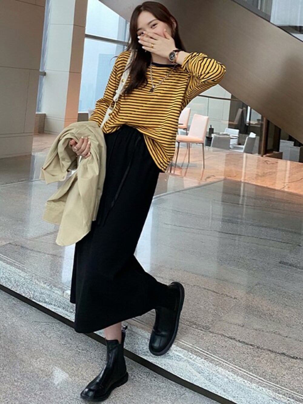 ✰⋆。:゚・*☽:゚・⋆。✰⋆。:゚・*☽:゚・⋆。✰⋆。:゚・*☽ \選べる6colors♡/ レトロカジュアルな雰囲気を醸す、 ボーダー柄ロングTシャツが登場中♡ ドロップショルダーでゆるっとカジュアルに 着こなせるロングTシャツはリラクシーながらも 一工夫あるパイピングデザインでしっかり感も醸す お洒落な一枚♡タックインしてもそのまま着ても サマになること間違いなし♪ 春から夏にかけてのスライド期間の着まわしに便利です♡ コーデは気分華やぐイエロー♡ ✰⋆。:゚・*☽:゚・⋆。✰⋆。:゚・*☽:゚・⋆。✰⋆。:゚・*☽