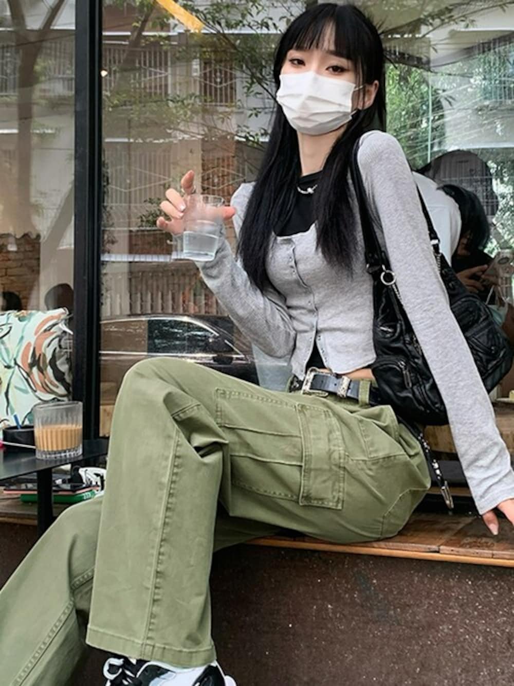 TeddyShop(TeddyShop)のカーゴパンツ「【なめらかピーチスキン仕立て】カジュアルストレートベイカーパンツ レディース」を使ったコーディネート