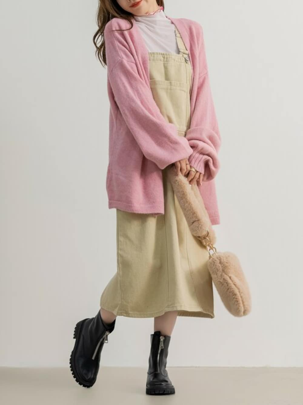 TeddyShop(TeddyShop)のカーディガン/ボレロ「レディース ボタンレスふんわりモヘア風ニットカーディガン」を使ったコーディネート