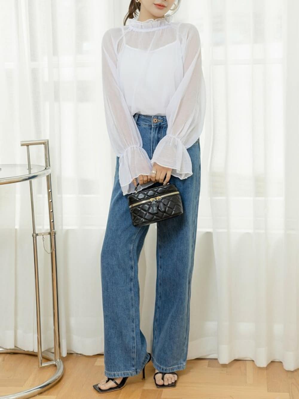 TeddyShop(TeddyShop)のシャツ/ブラウス「レディース シースルーフリルハイネックブラウス」を使ったコーディネート