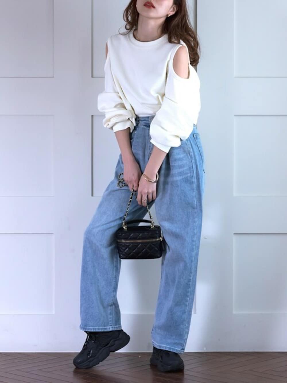 TeddyShop(TeddyShop)のスウェット「レディース オープンショルダーカットアウトスウェット」を使ったコーディネート