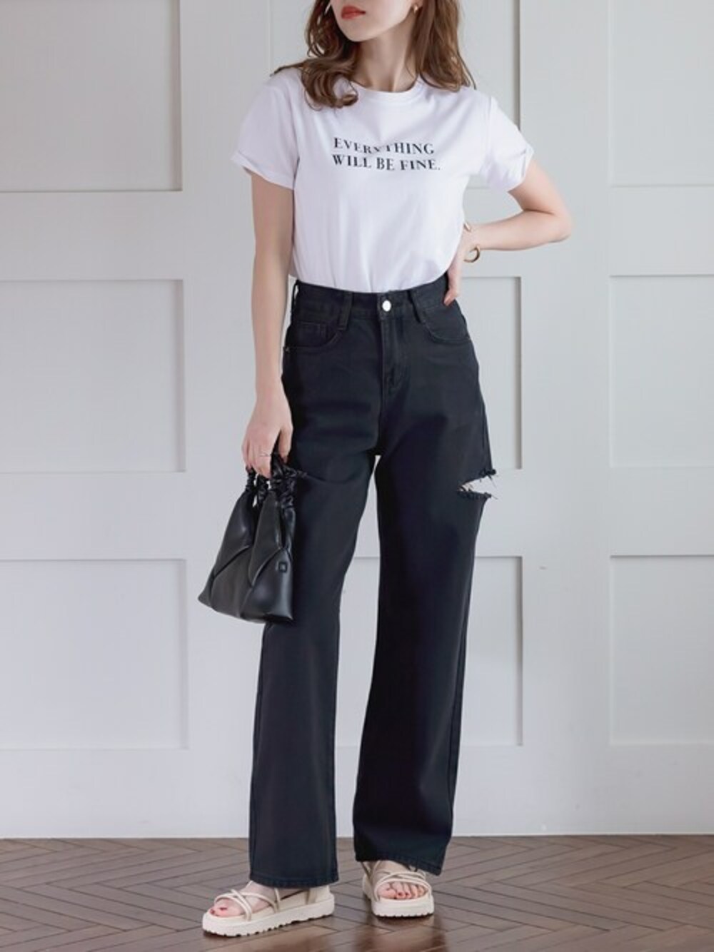 TeddyShop(TeddyShop)のデニムパンツ「レディース カッティングストレートハイライズデニムパンツ」を使ったコーディネート