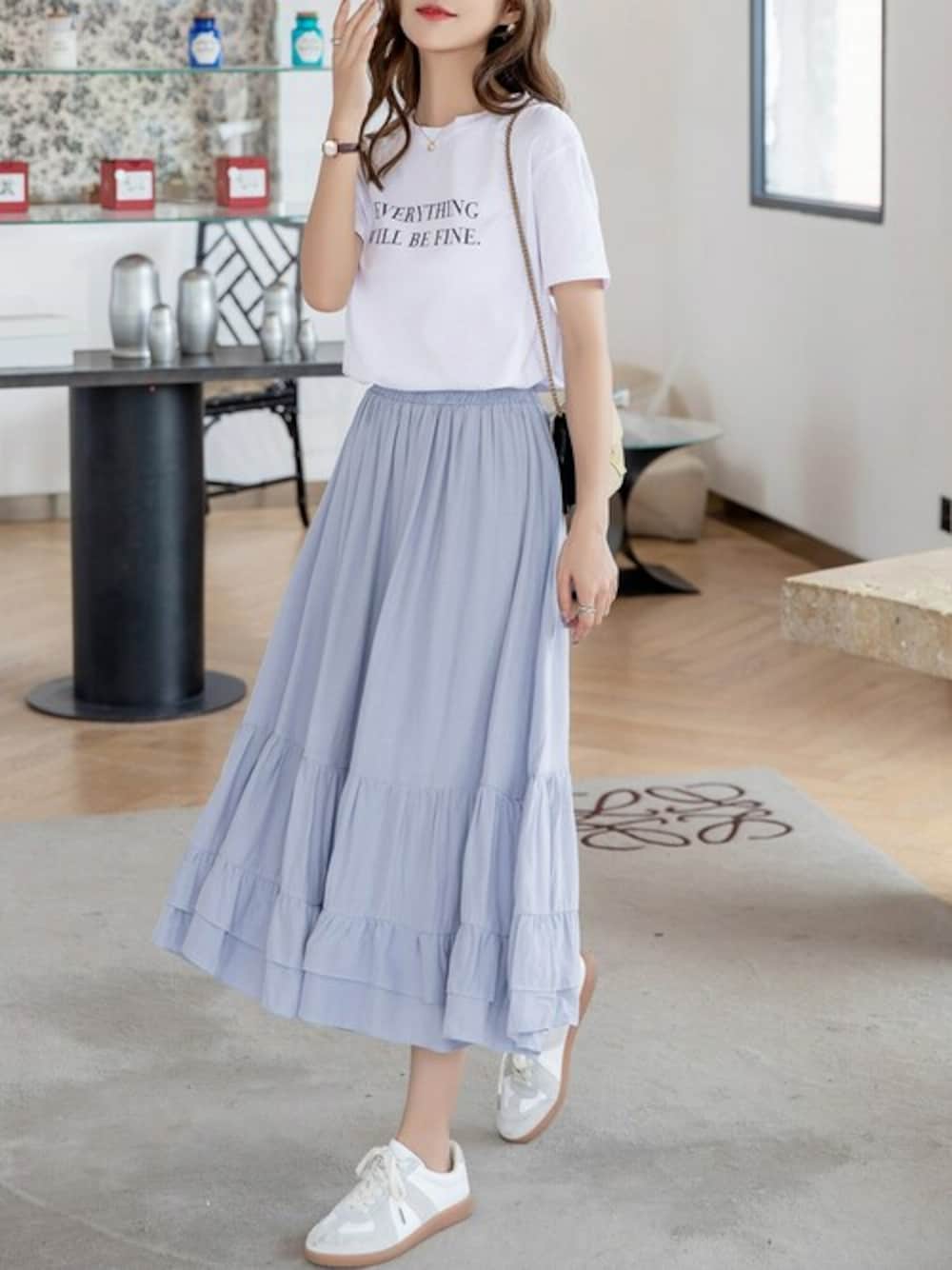 TeddyShop(TeddyShop)のスカート「レディース ミモレ丈きれいめティアードスカート」を使ったコーディネート