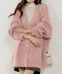 TeddyShop(TeddyShop)のカーディガン/ボレロ「【ゆるっとチュニック感覚でも♪】長袖ボリューミードロップショルダールーズローゲージニットカーディガン レディース」を使ったコーディネート