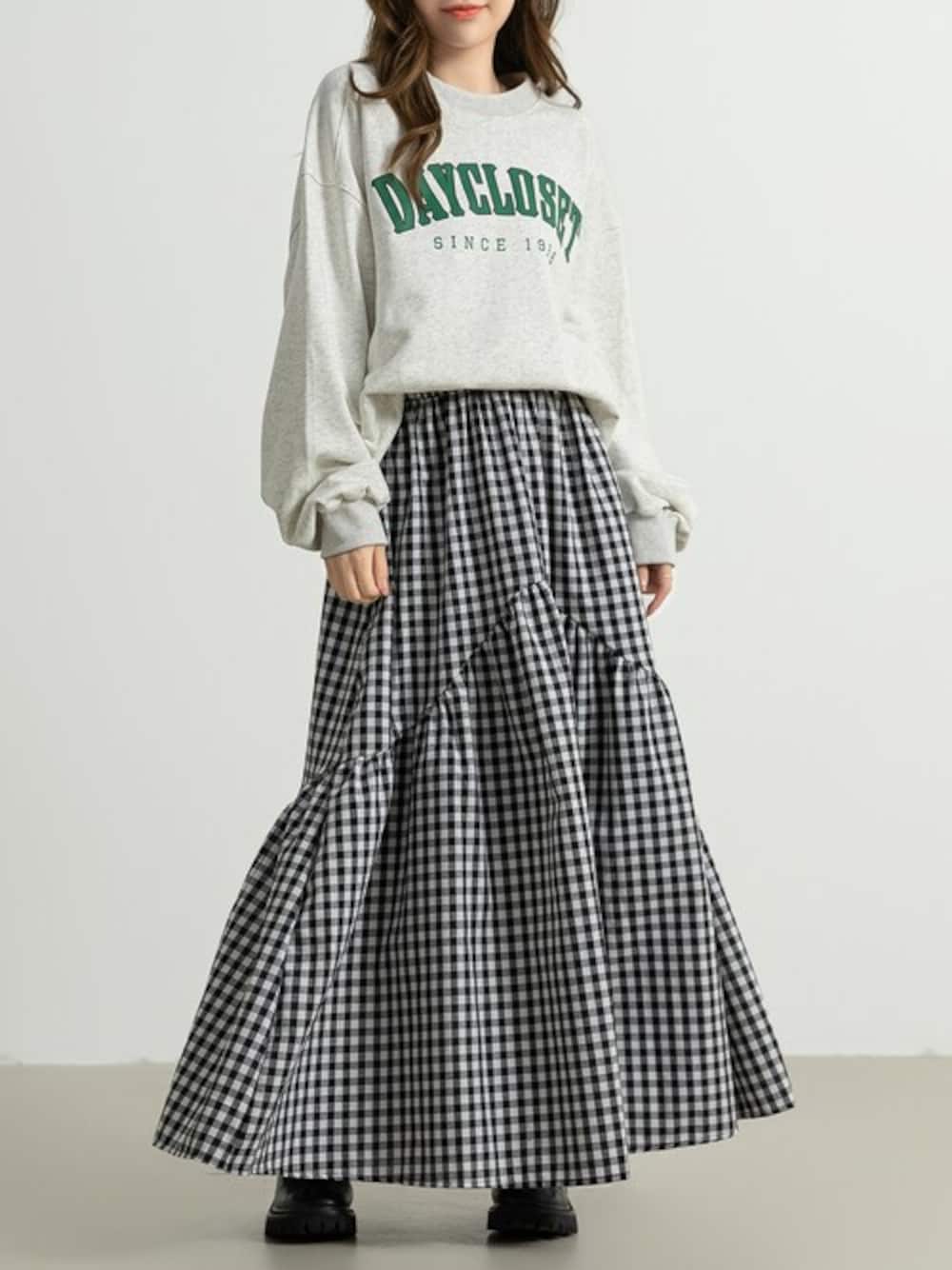 TeddyShop(TeddyShop)のスカート「レディース 前後2wayで着こなせる。ロング丈ラウンド切り替えフレアティアードスカート」を使ったコーディネート