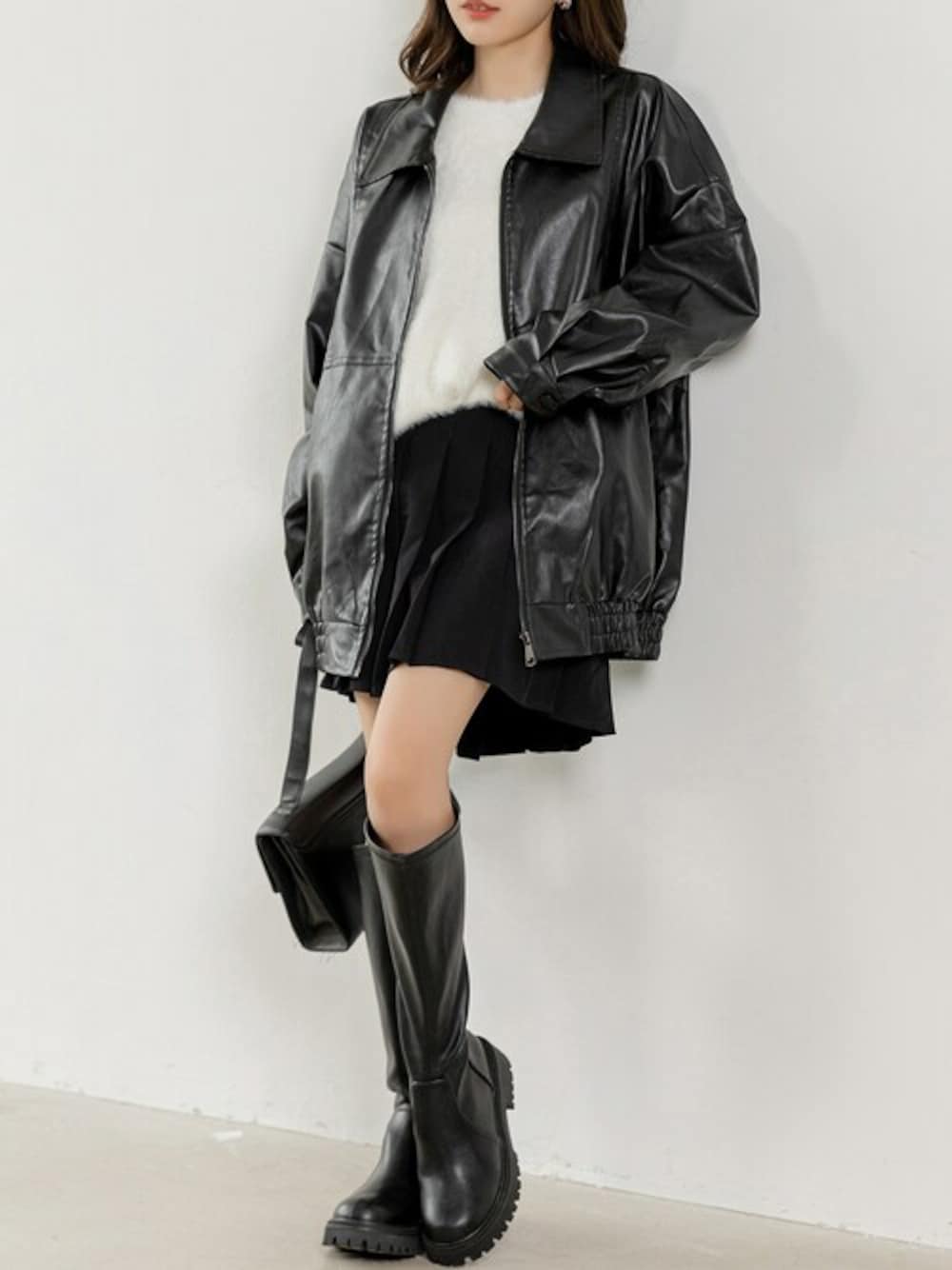 ✰⋆。:゚・*☽:゚・⋆。✰⋆。:゚・*☽:゚・⋆。✰⋆。:゚・*☽ \選べる2colors/ オーバーサイズでこなれてみえる♡ ゆるツヤフェイクレザーブルゾン♡ 今季新発売のゆったりしたオーバーサイズと テロっとしたツヤ感でエレガントな雰囲気も醸す フェイクレザージャケット♡ トレンドのシャギーニット×ショートボトムス ×ロングブーツの甘辛スタイルも大得意です♡ 袖口のボタンは飾りではないので、自分なりに 袖をアレンジできるのもポイント♡ こちらのアイテムは11月13日 02:59までタイムセール対象中です♡ ★ZOZOWEEK限定タイムセール開催中★ 新作ブラウス・セットアップ・デニム・ワンピ・ジャケットetc. 即戦力レディースアイテムをはじめ、 今季注目の新作水着も数多く対象中! 気になる対象アイテムを今すぐCHECK!! TeddyShop in ZOZOTOWN https://zozo.jp/shop/teddyshop/ ✰⋆。:゚・*☽:゚・⋆。✰⋆。:゚・*☽:゚・⋆。✰⋆。:゚・*☽