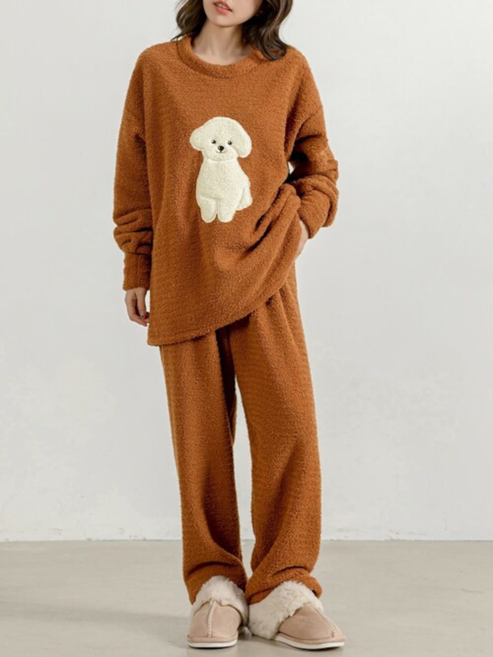 TeddyShop(TeddyShop)のルームウェア/パジャマ「【月刊TVガイド2月号掲載/セットアップ】あなたはどの子が好き?長袖モコモコプードルボア風ルームウェア 上下セットアップ レディース」を使ったコーディネート