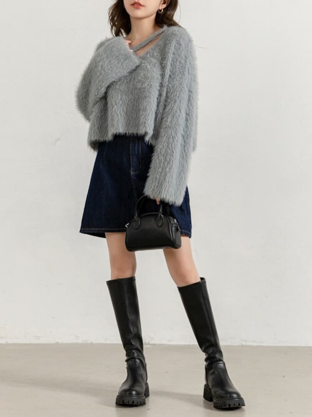 TeddyShop(TeddyShop)のニット/セーター「【モチモチ手触り】ショート丈 オープンライン アンゴラ風 シャギー ニット セータートップス 秋冬 レディース」を使ったコーディネート