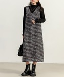 TeddyShop(TeddyShop)のジャンパースカート「レディース ツイード風異素材MIXジャンスカ」を使ったコーディネート