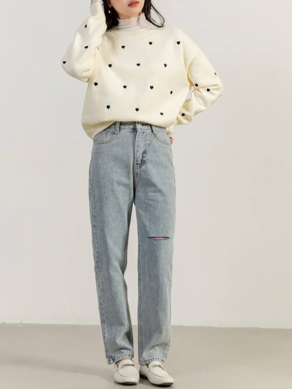 TeddyShop(TeddyShop)のニット/セーター「レディース 長袖恋する小粒ハートニットセーター」を使ったコーディネート