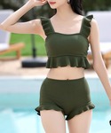 ✰⋆。:゚・*☽:゚・⋆。✰⋆。:゚・*☽:゚・⋆。✰⋆。:゚・*☽ \選べる7colors♡/ ハイウエストでスタイルアップ♪ ビスチェ風フリルタンキニ 上下2点セット♡ トレンドライクなビスチェ風のブラトップと ハイウエストショーツでスタイルアップが 期待できるタンキニが登場中♪ オーガニックなカーキカラーは大人も使いやすく 贅沢にあしらわれたフリルは華奢魅せ効果も◎ 大人ガーリーな水着styleにピッタリなセットアップです♪ ✰⋆。:゚・*☽:゚・⋆。✰⋆。:゚・*☽:゚・⋆。✰⋆。:゚・*☽