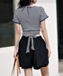 TeddyShop(TeddyShop)の水着「レディース水着 半袖ボーダー柄ホルターネックバックリボンクロップドビキニ 上下2点セット【WEB限定】」を使ったコーディネート