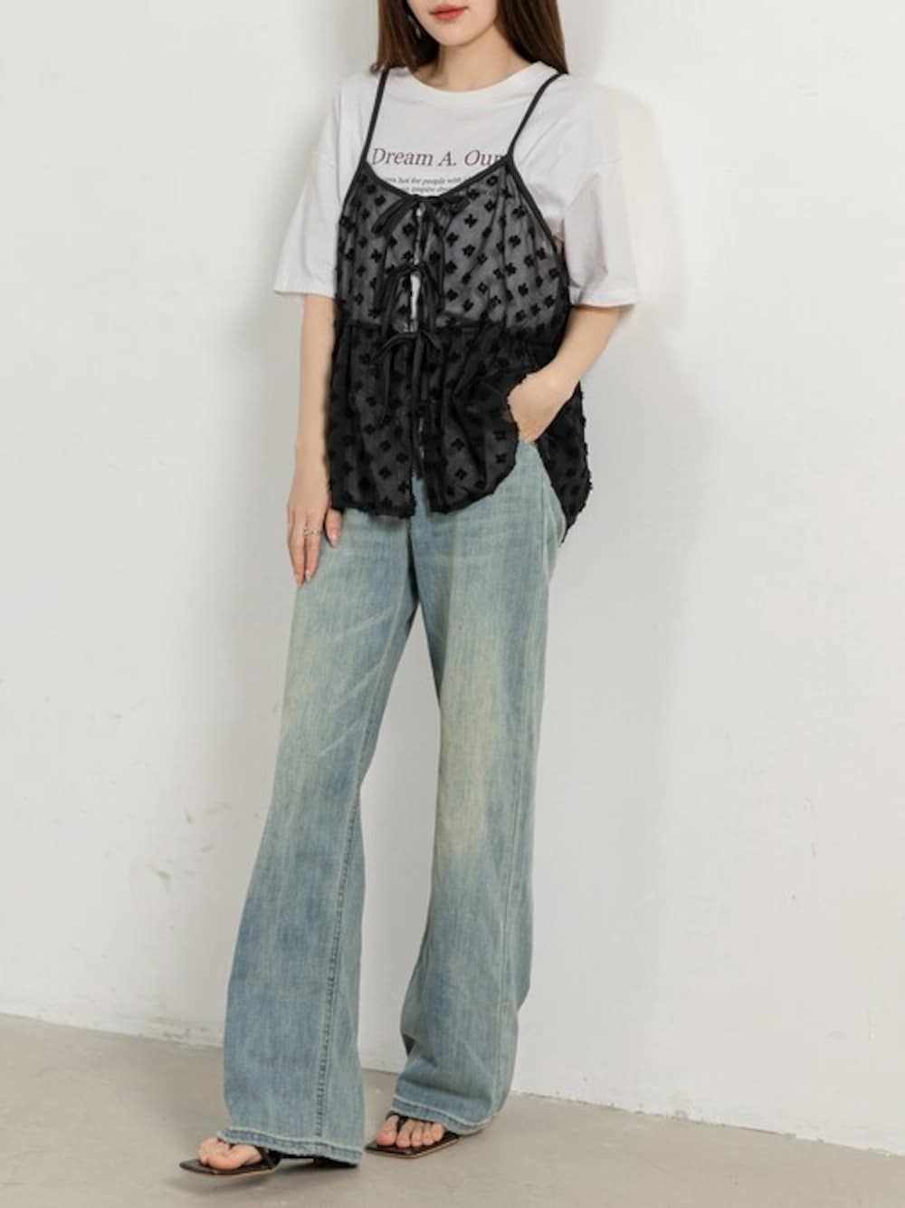 ✰⋆。:゚・*☽:゚・⋆。✰⋆。:゚・*☽:゚・⋆。✰⋆。:゚・*☽ \選べる2colors♡/ 2024新作!!涼し気なレイヤードスタイルが完成♪ ウエスト切替えリボンチュールキャミソール♡ Tシャツの上から1枚オンするだけでトレンドライクな レイヤードコーデが完成するキャミソールが新登場♪ 透け感があるので重い印象にならず、むしろ夏も涼しく爽やかさアップ♪ フロントリボンと小花の装飾付きなのでカジュアルスタイルに ガーリーな印象をプラスできるのも嬉しいポイント♪ コーデのTシャツは5月27日 02:59までタイムセール対象中です♪ ◆ZOZOWEEK限定セール開催中◆ 新作ブラウス・セットアップ・デニム・ワンピ・ジャケットetc. 即戦力レディースアイテムをはじめ、新作水着も数多く対象中! 気になる対象アイテムを今すぐCHECK!! TeddyShop in ZOZOTOWN https://zozo.jp/shop/teddyshop/ ✰⋆。:゚・*☽:゚・⋆。✰⋆。:゚・*☽:゚・⋆。✰⋆。:゚・*☽