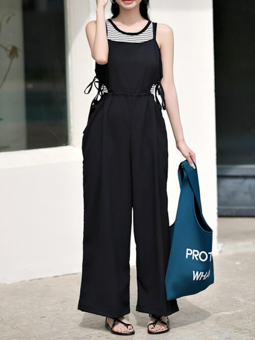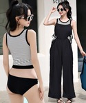 TeddyShop(TeddyShop)の水着「【UVカット率 99%以上】バッククロスサロペット+ボーダービキニ 3点セット」を使ったコーディネート