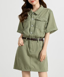 TeddyShop(TeddyShop)のワンピース「レディース 半袖ロールアップデニムミニワンピース」を使ったコーディネート