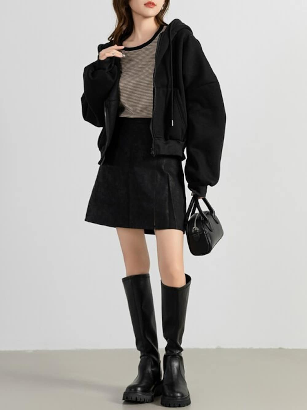 TeddyShop(TeddyShop)のパーカー「レディース 裏起毛ドロップショルダークロップドパーカー」を使ったコーディネート