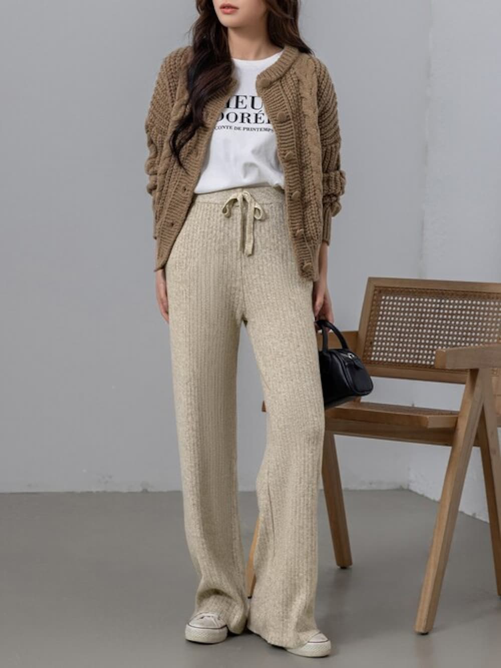TeddyShop(TeddyShop)のニット/セーター「【ハイ&ローゲージの立体感】長袖ぷっくりケーブル編みラウンドネックリブニットカーディガン レディース」を使ったコーディネート