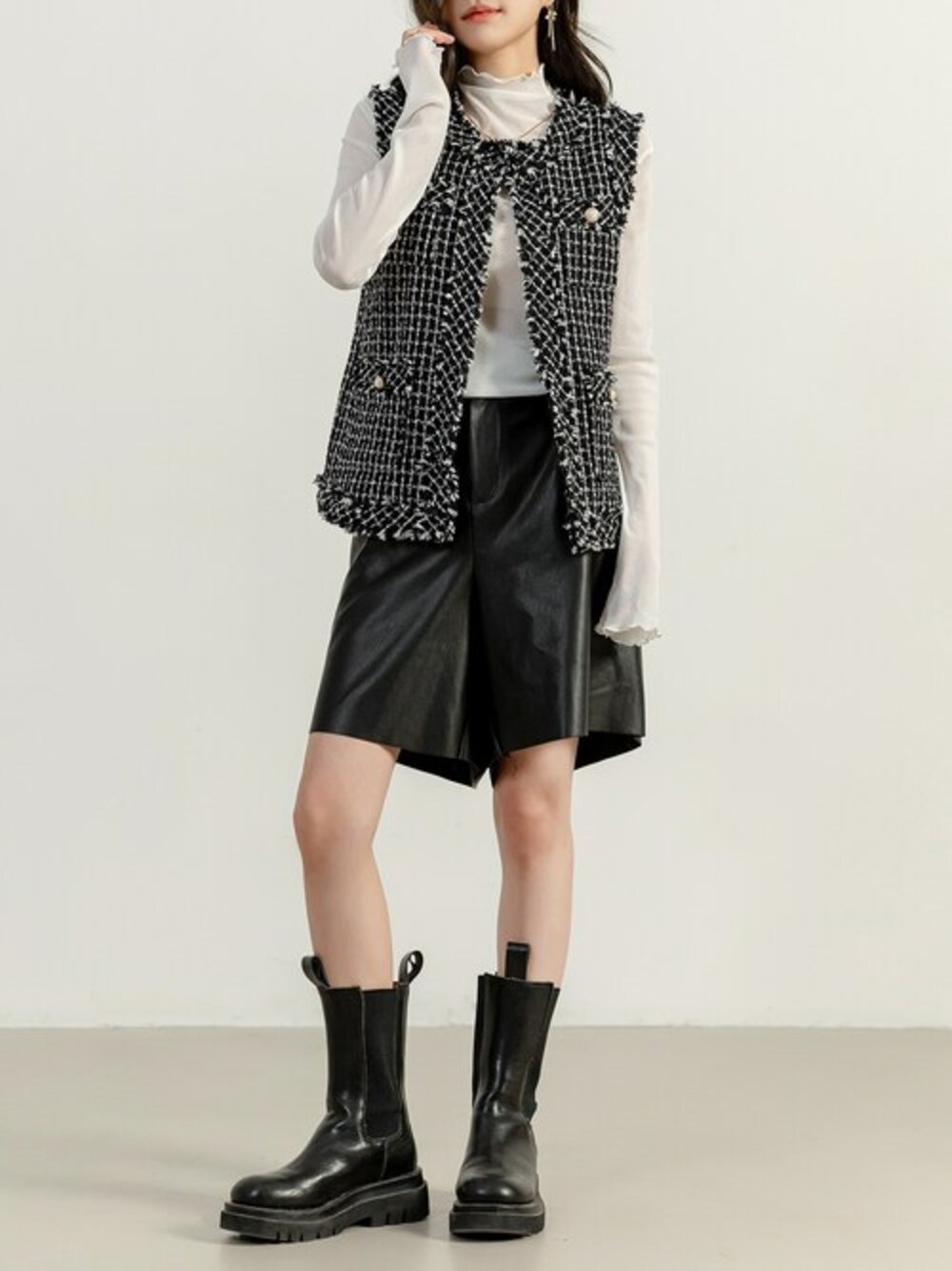 TeddyShop(TeddyShop)のベスト「レディース ツイード風クラシカルフリンジベスト」を使ったコーディネート