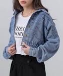 TeddyShop(TeddyShop)のデニムジャケット「【大きいサイズ有/ショート丈】 長袖 ウォッシュ加工 ドロップショルダー デニムジャケット レディース」を使ったコーディネート
