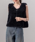 TeddyShop(TeddyShop)のベスト「【ショート丈/裏地付き/Vネックで小顔魅せ】モコモコプードルファーベスト/ジレ レディース」を使ったコーディネート