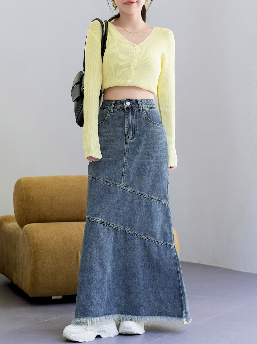 TeddyShop(TeddyShop)のデニムスカート「【大きいサイズ有】程よいくびれライン。斜め切り替え×フリンジデニムマーメイドスカート レディース」を使ったコーディネート