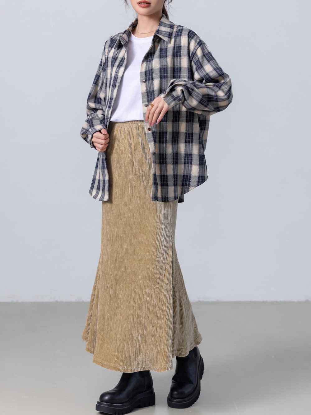 ✰⋆。:゚・*☽:゚・⋆。✰⋆。:゚・*☽:゚・⋆。✰⋆。:゚・*☽ \選べる4colors♡/ チェック柄とベロアで作る大人カジュアルな秋コーデ。♪ ベロアランダムプリーツマーメイドスカート♡ 商品コード:89235444 秋らしさを纏いたいなら一転投入するだけで 季節感あふれるコーデが叶うチェックシャツが最適♪ 先週よりもかなり涼しくなったからあわせるスカートも秋冬注目のベロア生地♪ カジュアルながらもマーメイドラインで女性らしさも満点です♪ こちらのアイテムは本日23:59まで500円OFFクーポン対象中♪ ■気になったらZOZOTOWNでお気に入り登録がオススメ! アイテムのセール情報・再入荷・ラスト1点などお得な情報をGET♪ あなただけのタイムセール候補にも♪ ■本日23:59まで対象アイテム限定500円OFFクーポン発行中♪ 即戦力レディースアイテムをはじめ、新作水着も数多く対象中! ■気になる対象アイテムを今すぐCHECK!! https://zozo.jp/shop/teddyshop/ ■SNSで最新情報をチェック! Instagram > @day_closet1203 TikTok > @daycloset.official ✰⋆。:゚・*☽:゚・⋆。✰⋆。:゚・*☽:゚・⋆。✰⋆。:゚・*☽