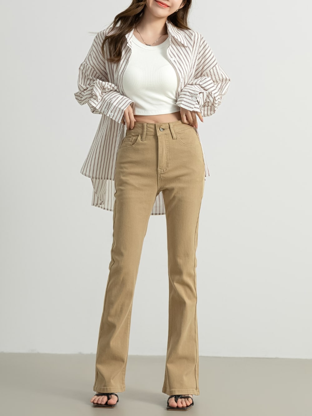 TeddyShop(TeddyShop)のデニムパンツ「[大きいサイズ有/すらっと美脚見せ] ハイウエスト ストレッチ フレア ブーツカット デニムパンツ レディース ジーンズ」を使ったコーディネート