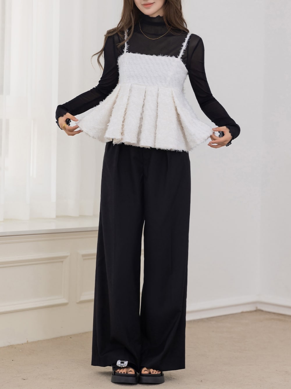 TeddyShop(TeddyShop)のキャミソール「360度着映えるふわふわカットジャガード。バックリボンペプラムキャミビスチェ」を使ったコーディネート