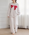 TeddyShop(TeddyShop)のルームウェア/パジャマ「【セットアップ/静電気防止/保温性・吸湿性・通気性あり】長袖リボンシャギーニット異素材MIXトップス+ロングパンツ ルームウェア上下2点セット レディース」を使ったコーディネート