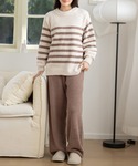TeddyShop(TeddyShop)のルームウェア/パジャマ「レディース 長袖もこもこボーダートップス+腹巻付きロングパンツルームウェア 上下2点セット」を使ったコーディネート