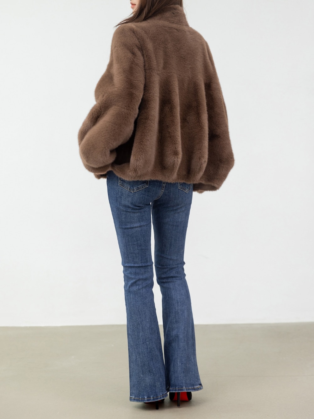 TeddyShop(TeddyShop)のブルゾン「華奢魅せできるこだわりバルーンシルエット。厚手スタンドカラーフェイクファーブルゾン レディース」を使ったコーディネート
