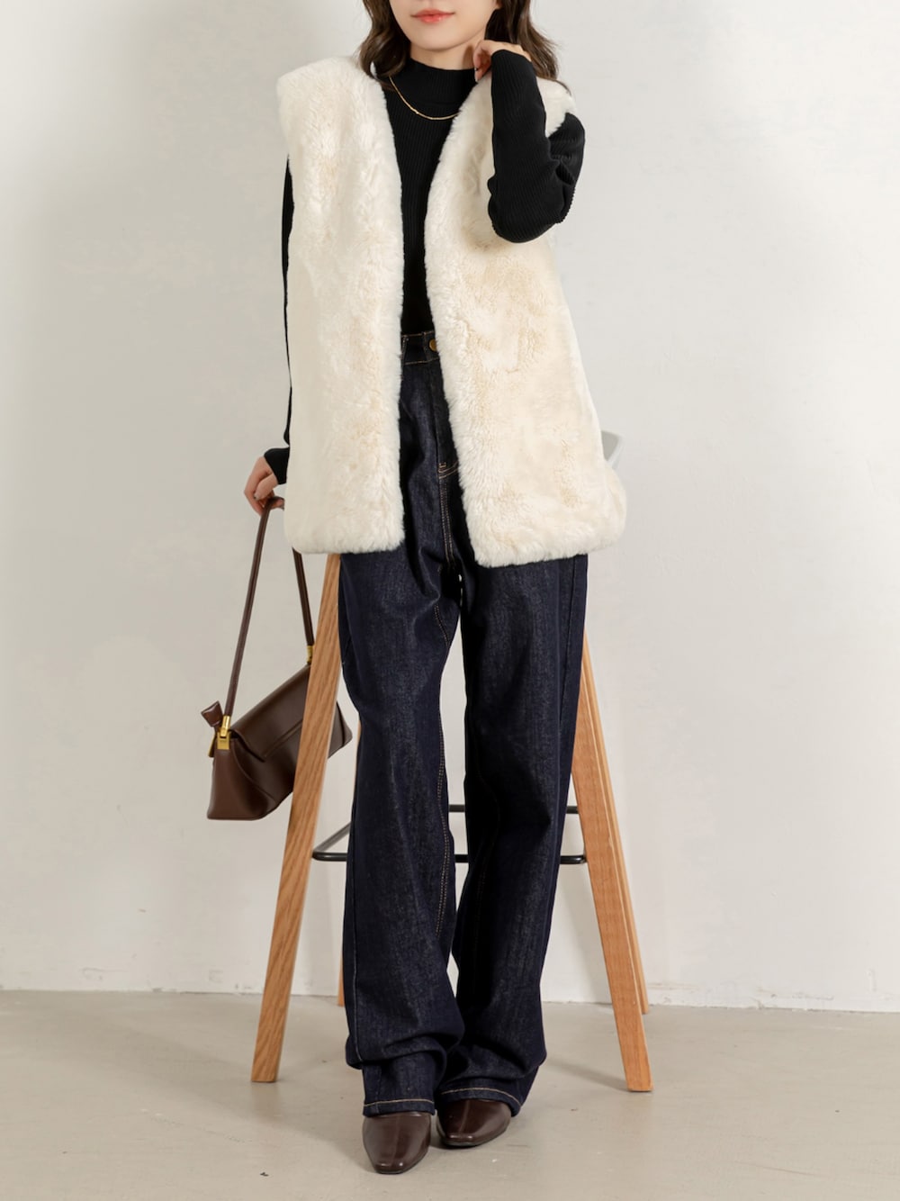 TeddyShop(TeddyShop)のベスト「レディース ボタンレスフェイクファージレベスト」を使ったコーディネート