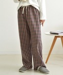 TeddyShop(TeddyShop)のルームウェア/パジャマ「【裏起毛/ゴム・紐調節可】冬もぽかぽか。韓国っぽ チェック柄 ボア ロング ルームパンツ レディース」を使ったコーディネート