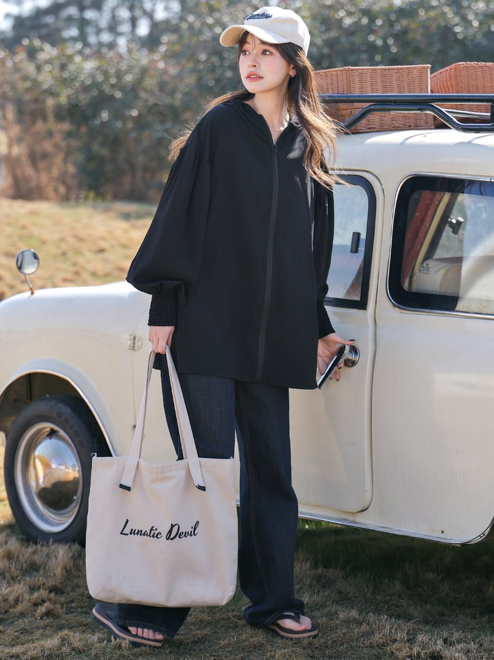 TeddyShop(TeddyShop)のラッシュガード「【UVカット率 99%以上/接触冷感/大きいサイズ有】レディース水着 ぽわん袖が可愛い。長袖フード付きハイネックフレアラッシュパーカー 水陸両用 水着体型カバー」を使ったコーディネート