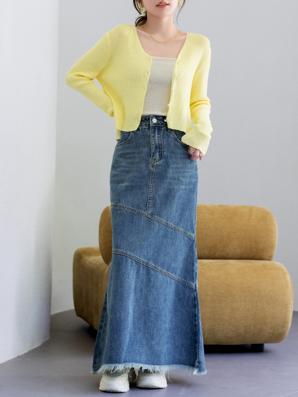✰⋆。:゚・*☽:゚・⋆。✰⋆。:゚・*☽:゚・⋆。✰⋆。:゚・*☽ \選べる4colors♡/ トレンドカラーのイエローで春コーデが冴えわたる♪ 長袖パール調ボタンのシアーニットカーディガン♡ 商品コード:95611795(カーディガン)、95910752(デニムスカート) 今季注目の春カラーであるイエローの薄手ニットカーディガン。 カジュアルなロング丈のデニムスカートとも好相性に決まるクロップドな丈感と 透け感のあるシアーで春から夏まで即戦力間違いなし♪ 優しい印象をもたらすパール調ボタンのアクセントで カジュアルスタイルでも品よくきまります♪ こちらのアイテムは3月30日 01:59までタイムセール対象中!! ■気になったらZOZOTOWNで最新情報が手に入るお気に入り登録がオススメ! アイテムのセール情報・再入荷・ラスト1点などお得な情報をGET♪ あなただけのタイムセール候補にも♪ ■本日23:59まで対象アイテム限定1,000円OFFクーポン発行中♪ 即戦力レディースアイテムをはじめ、新作水着も数多く対象中! ■気になる対象アイテムを今すぐCHECK!! https://zozo.jp/shop/teddyshop/ ■SNSで最新情報をチェック! Instagram > @day_closet1203 TikTok > @daycloset.official ✰⋆。:゚・*☽:゚・⋆。✰⋆。:゚・*☽:゚・⋆。✰⋆。:゚・*☽
