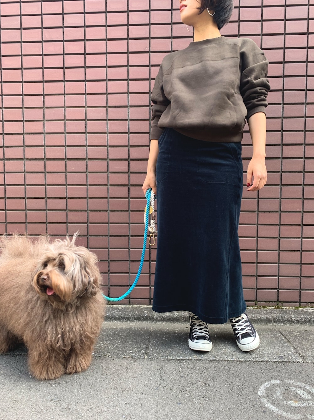 クルーネックスウェットシャツにタイトスカートを合わせて女性らしいシルエットに◎ Topsは裏起毛になってます。