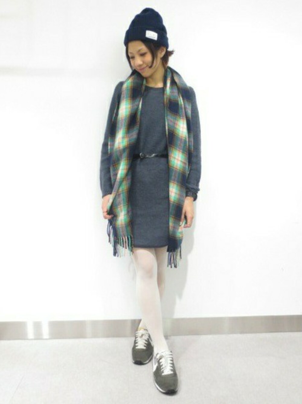 ゆったり楽ちんなニットワンピースをスニーカーでカジュアルに合わせました。