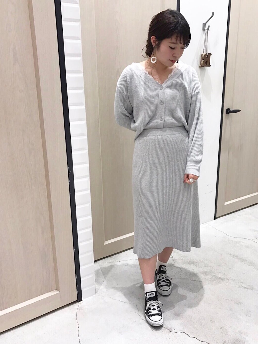 オフショルがポイントのセットアップ☆ スニーカー合わせでカジュアルに(^ ^)