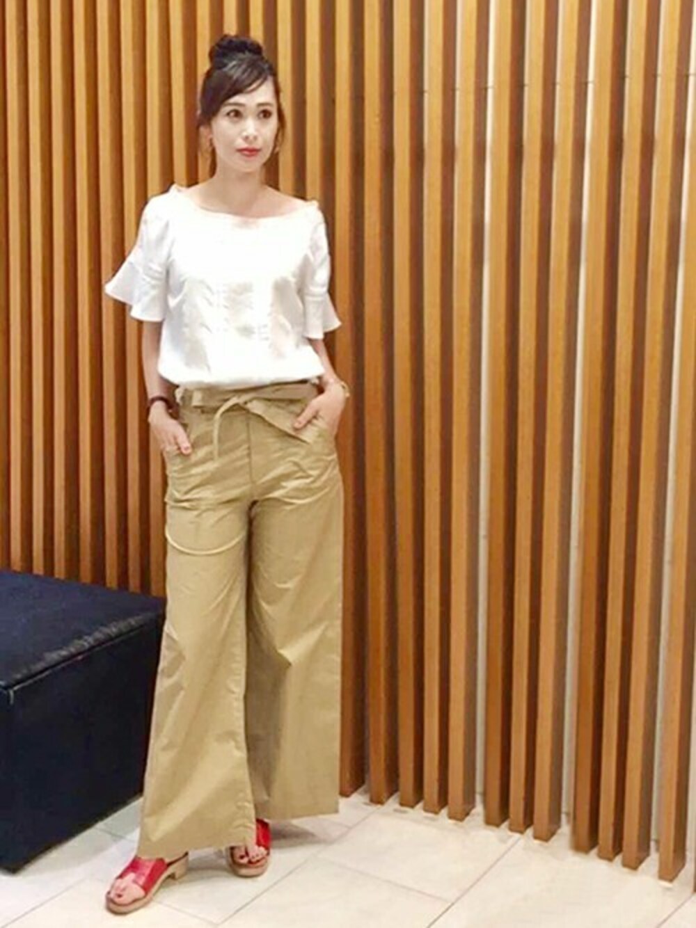 フォークロアテイストの刺繍をあしらったブラウスは、フレアスリーブでトレンド感満載の今年らしい一枚。 ワイドパンツと合わせて、夏のお出かけにぴったりなカジュアルスタイルにしました。